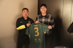 为即将到来的世界杯考察球员,时隔十余年金东进再次回到黄龙,此行俱乐部为他赠送了纪念球衣。金东进感叹俱乐部有了焕然一新的面貌,为老东家的发展和成绩感到自豪,同时非常感谢球迷朋友一直以来对他的关注。