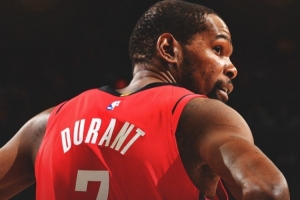 赛后火箭官方晒出本场赢球海报,封面人物是杜兰特。