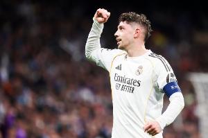 体育资讯3月15日讯 西甲第28轮比赛,皇马在伯纳乌迎战埃尔切。本场比赛上半场,主队以2-0的比分领先,巴尔韦德打进第2球。