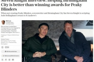 体育资讯3月17日讯 《浴血黑帮》主创、伯明翰资深球迷史蒂文·奈特接受采访,谈到伯明翰新球场设计、对贝林厄姆回归的憧憬、家庭与俱乐部的深厚渊源,以及《浴血黑帮》IP如何影响俱乐部现实。