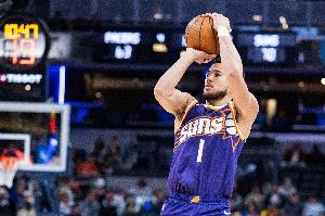 太阳主将布克开局就展现出不俗状态,一度连续打成2+1帮助球队建立领先,外线三分手感也不错。